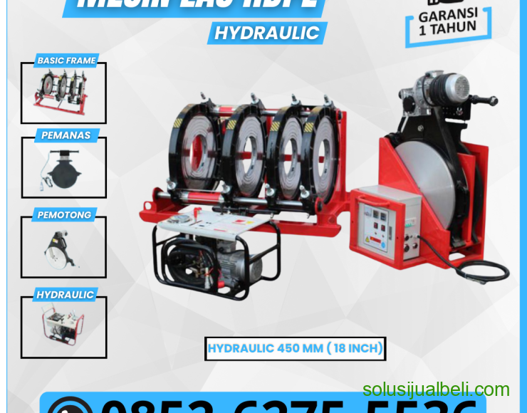 Mesin Las Pipa Hdpe SHD 450mm Hydraulic | Mesin Penyambung Pemanas Pipa Hdpe 18 Inch Alat Untuk Pengelasan Atau Penyambung Pipa Dan Fiting HDPE, PPR, PP, PVDF BAGIAN UTAMA MESIN : • Basic Frame ( 4 Clamp, model SHD ) • Heating Plate (Teflon PTFE Coated dan Temperature Control) • Electric Planning Tool • Support untuk Planning Tool and Heating Plate • Tool Box TLPN WA ADMIN 0852627555