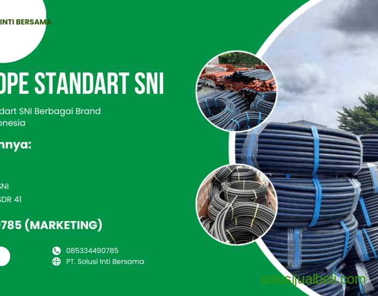 PT. Solusi Inti Bersama merupakan Distributor Perpipaan, yang menyediakan berbagai macam pipa, antara lain : - Pipa HDPE - Mesin Las HDPE Bergaransi - Pipa PPR - Mesin Las PP-R Bergaransi - Pipa PVC SNI - Pipa PVC AW/D - Pipa Limbah - Pipa PEX - Pipa MDPE/ Gas - Pipa Subduct - Water Meter - Box Water Meter - Kran Air, dan lain-lain Dengan berbagai macam merek pipa beserta fittingnya. Dapatkan diskon terbaik dari kami. Kami selalu memberikan kualitas, layanan, dan harga terbaik untuk Anda. Untuk informasi selanjutnya, silahkan hubungi kami PT. Solusi Inti Bersama WA/HP Marketing 085334490785